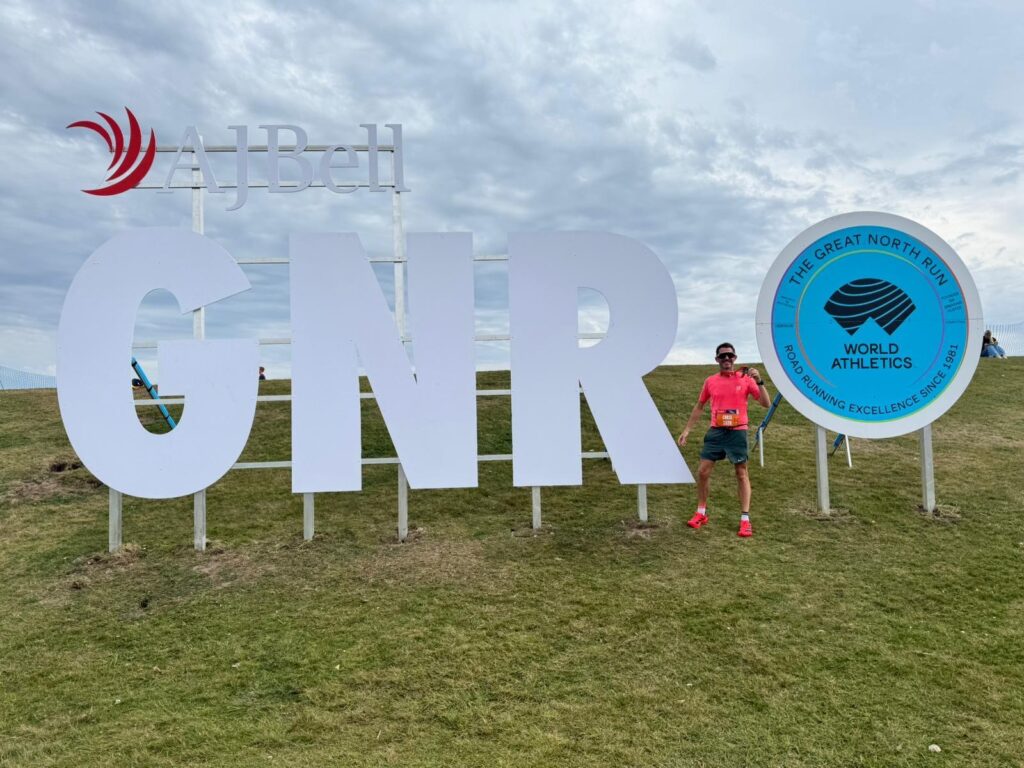 This was my first Great North Run; we began the long walk from the Quayside in Newcastle on a sunny Sunday morning, following the hundreds of runners making their way to the start. The sheer number of runners was incredible, something I’ve never experienced before; as we waited for the start of the men’s elite race to begin, both carriageways of the motorway were filled with runners for as far as the eye could see.