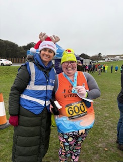 I felt very tired and had a job to pick up my feet on the last few steps but at the same time so pleased and overjoyed to have finished and got a really great medal from Robbie from TRAC and a few photos from him and some of the Marshalls before heading over to congratulate other Coasties.