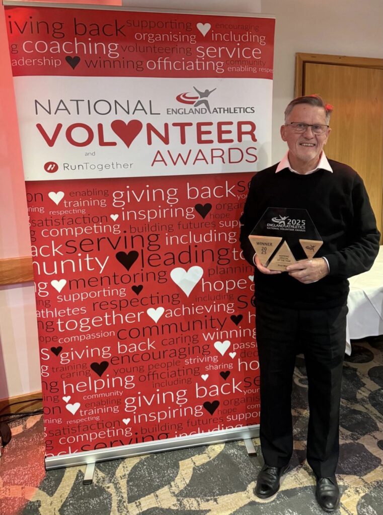 Paul said “I was very humbled to receive this national award, it’s a great honour to represent my running club and road running in general.  We were on a table with Chris Jones CEO of England Athletics Jack Buckner CEO of UKA Clive Poynter, National Board member and Karen Forbes from World Athletics. Hannah England was the compare for the evening lots of up and coming young athletes.  I feel very honoured to be recognised and the trophy will be treasured.”